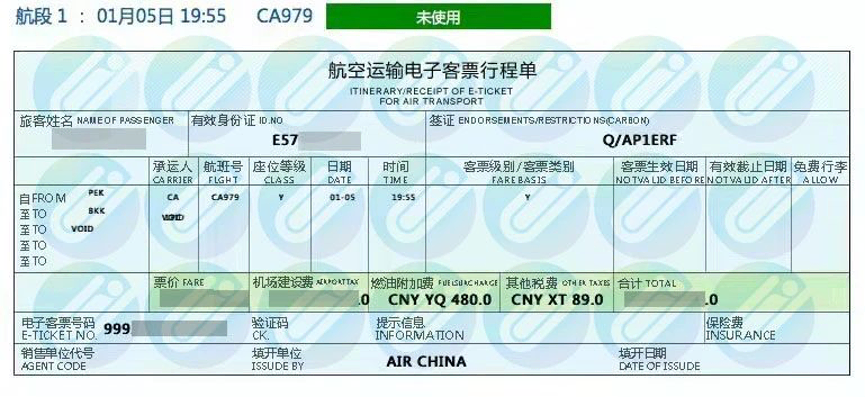 母女二人的机票预订单